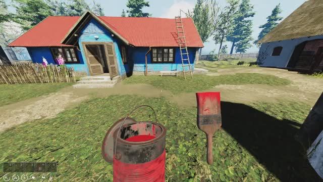 кошу траву и закидываю её в компост . покрасил дом , крышу , трактор и сарай с колодцем .
