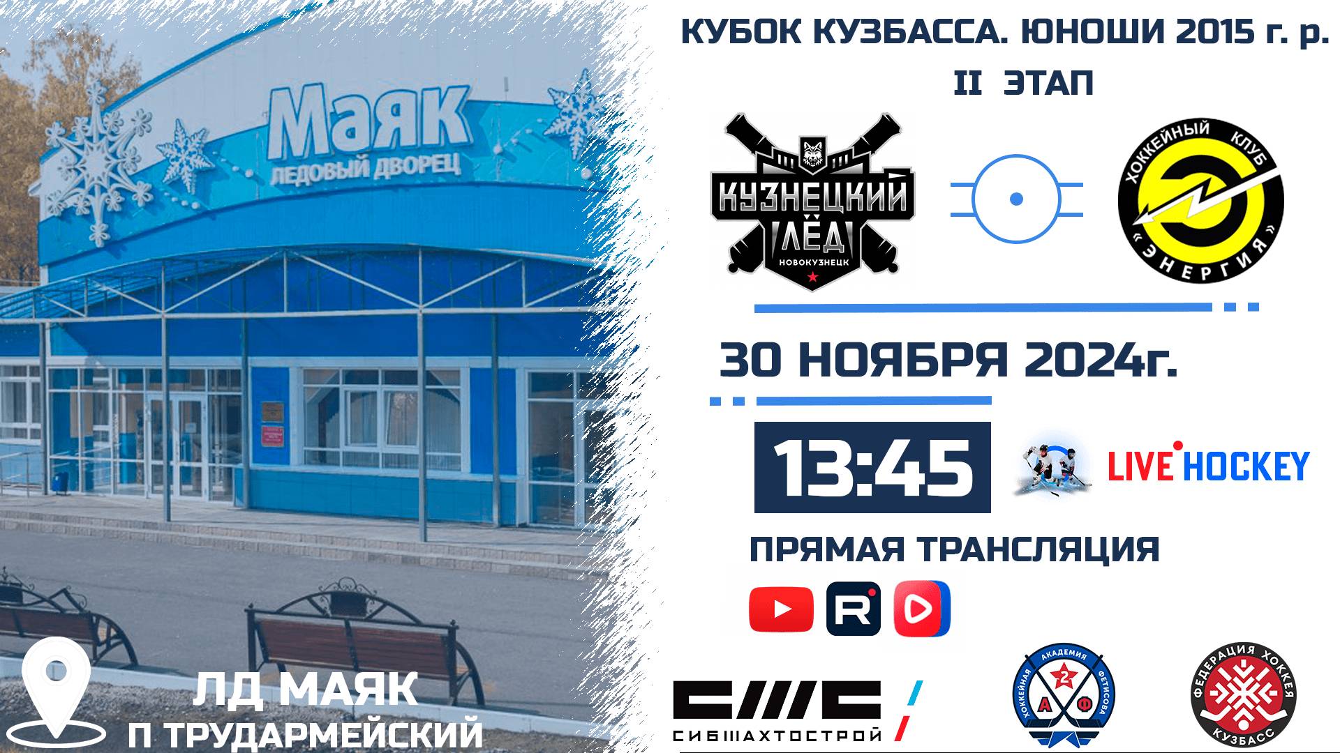 30.11.2024г. КУЗНЕЦКИЙ ЛЕД (Новокузнецк)-ЭНЕРГИЯ-2 (Кемерово). КУБОК КУЗБАССА. Юноши 2015 г.р.