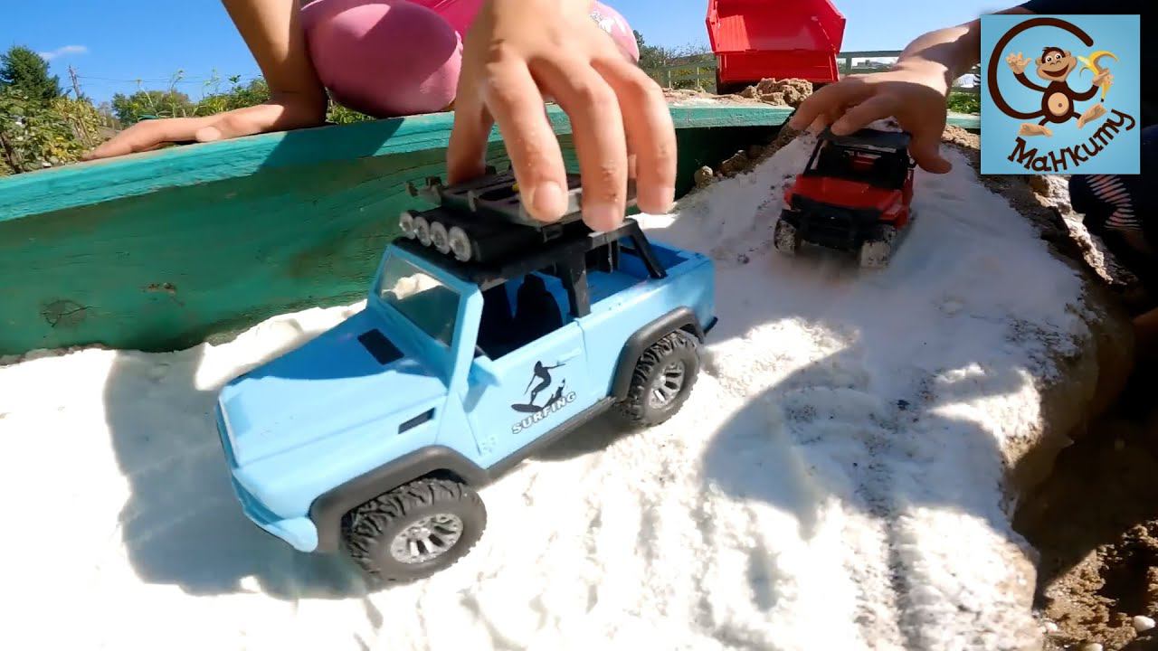 Привет. В этом видео Диана и Даня взяли свои машинки-игрушки «Брудер» и отправились в песочницу. Дети будут играть машинками, строить дороги и мосты. Сделают речку для игрушек и искусственный снег.