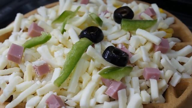 Комбинированная пицца вафли - корейская уличная еда _ Combination Pizza Waffle - Korean street food