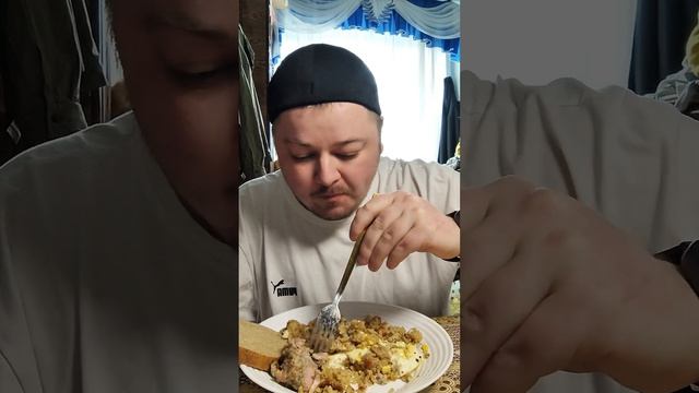 Каша с тушёнкой + яичница | Мукбанг