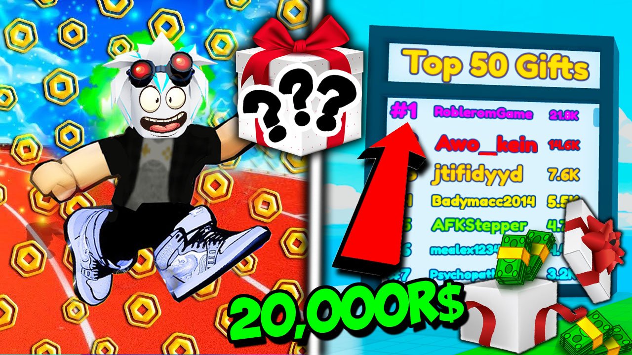 РАЗДАЛ ВСЕМ ИГРОКАМ 20,000 РОБУКСОВ И СТАЛ ТОП-1 МИРА ПО ПОДАРКАМ! ROBLOX Race Clicker
