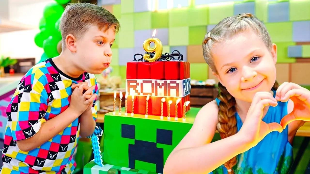Диана и Рома отмечают День рождения Ромы в стиле Майнкрафт!