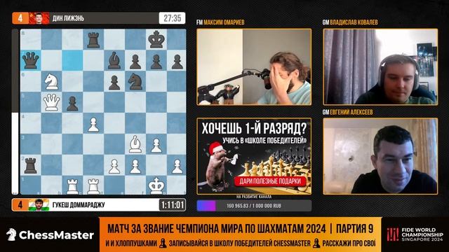 Дин - Гукеш. 9-я партия матча за звание чемпиона мира. ChessMaster