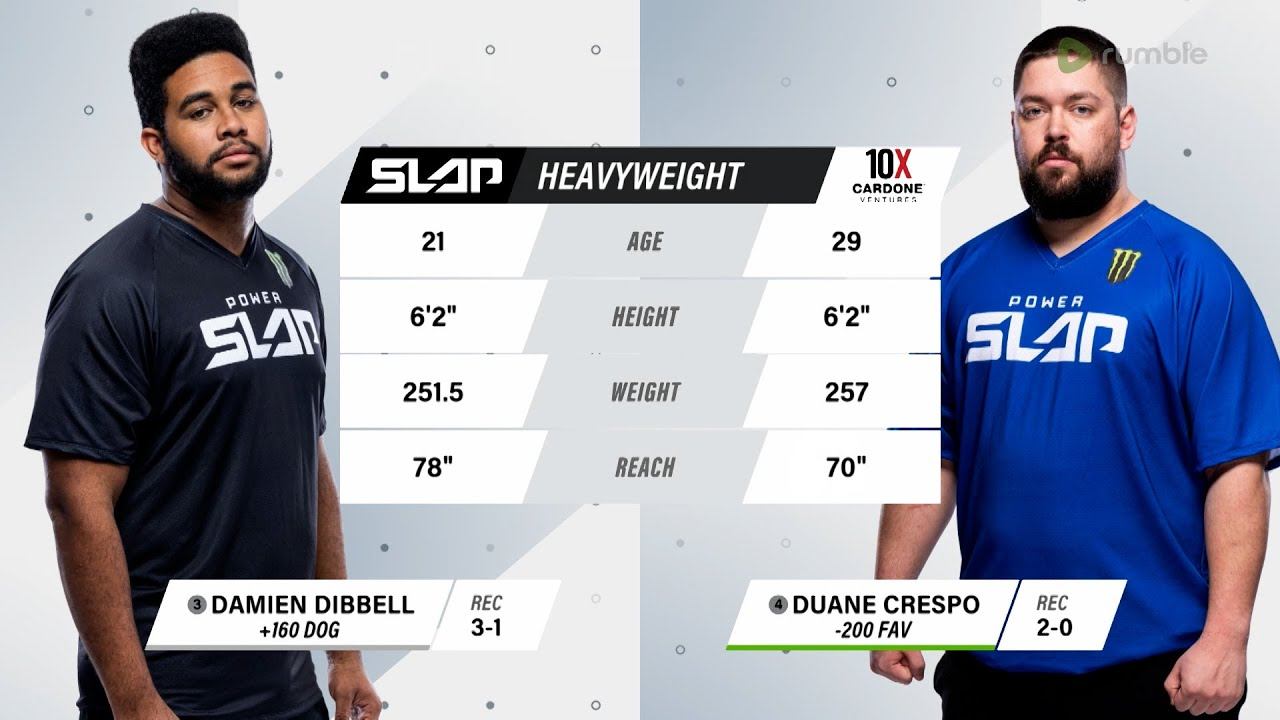 Don't miss Power Slap 2, May 24, on RUMBLE https://rumble.com/powerslap Relive Power Slap 1: Damien Dibbell vs Duane Crespo before Power Slap 2 airs May 24 exclusively on Rumble! ! Watch the Power Slap 2 live & free on RUMBLE http://bit.ly/3J7WHCr ‼️ Rumble is free on desktop, mobile and web at www.rumble.com, iOS, Android, Roku, AppleTV, FireTV, Android TV and LG TV. Live results: http://bit.ly/3FjKSIq Subscribe to get all the latest UFC content: https://ufc.ac/3u8FIJp Experience UFC live with UFC FIGHT PASS, the digital subscription service of the UFC. Visit https://ufcfightpass.com/ To order UFC Pay-Per-Views on ESPN+, visit https://ufc.ac/3NKBvmx (U.S. only) To order UFC Pay-Per-Views, visit http://welcome.ufcfightpass.com/#PPV (Non U.S.) Shop official UFC Gear, visit https://ufcstore.com Shop official UFC Memorabilia, visit https://ufccollectibles.com Shop official UFC VIP Live Event Experiences, visit https://ufc.ac/3Oz2gLH Connect with UFC online and on Social: Website: http://www.ufc.com Twitter: http://www.twitter.com/ufc Facebook: http://www.facebook.com/ufc Instagram: http://www.instagram.com/ufc Snapchat: UFC Twitch: https://www.twitch.tv/ufc Connect with UFC FIGHT PASS on Social: Twitter: http://www.twitter.com/ufcfightpass Facebook: http://www.facebook.com/ufcfightpass Instagram: http://www.instagram.com/ufcfightpass #UFC #PowerSlap #PowerSlap2 #DanaWhite