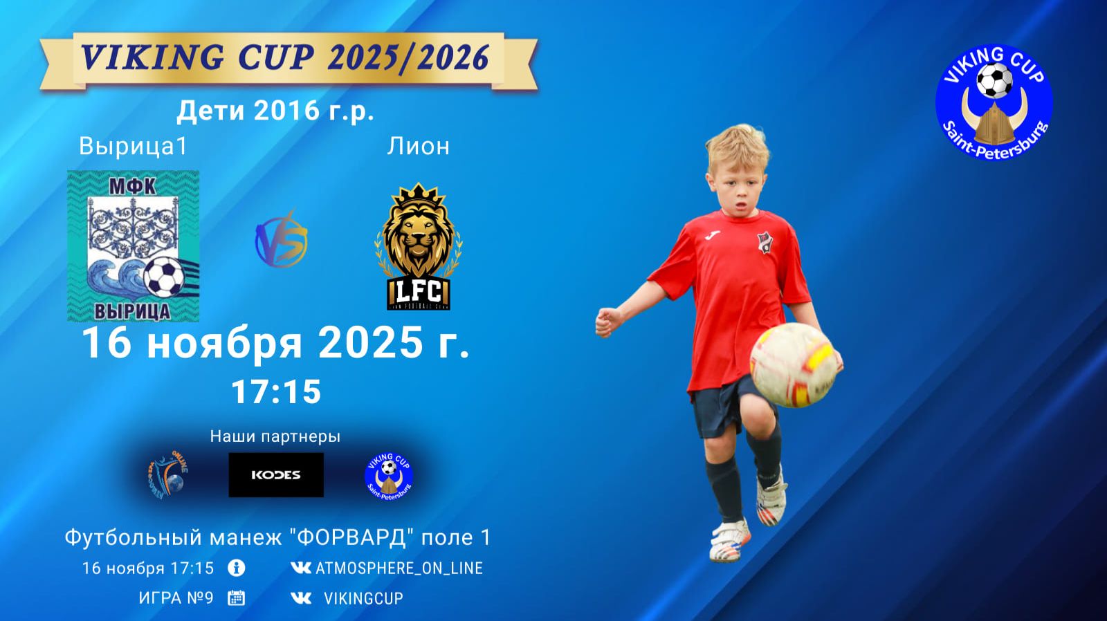 VIKING CUP среди команд 2016 г.р. (U9), Поле 1 16 ноября 2025 САНКТ-ПЕТЕРБУРГ, ФЦ "Форвард" ФК "Вырица1" - ФК "Лион"/VIKING CUP, Игра №9, 16-11-2025 17:15