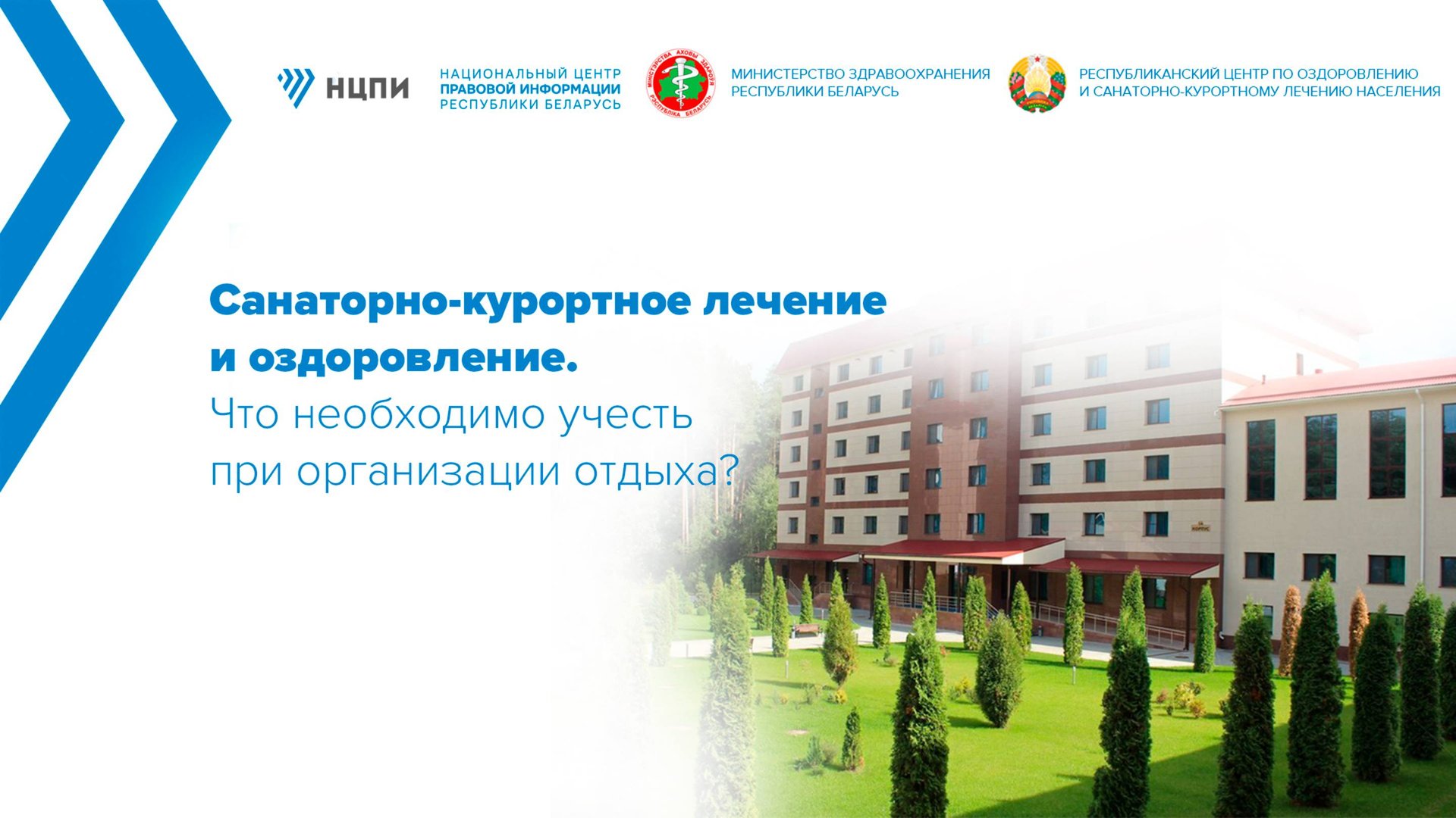 1 января 2024 г. вступил в силу Указ Президента Республики Беларусь от 2 ноября 2023 г. № 343 «Об изменении указов Президента Республики Беларусь», направленный на совершенствование организации санаторно-курортного лечения и оздоровления населения. В частности, документом корректируются положения Указа Президента Республики Беларусь от 28 августа 2006 г. № 542 «О санаторно-курортном лечении и оздоровлении населения». В студии НЦПИ выступили представители Республиканского центра по оздоровлению и санаторно-курортному лечению населения – начальник отдела организационно-кадровой работы и обеспечения путевками Людмила Белохвостик и юрисконсульт Ольга Розгина, а также Министерства здравоохранения – начальник отдела медицинских экспертиз главного управления контроля медицинской деятельности, лицензирования и обращения лекарственных средств Татьяна Перепецкая. Спикеры осветили вопросы применения норм Указа № 343 и иных актов, в том числе: основные изменения в правовом регулировании вопросов организации санаторно-курортного лечения и оздоровления населения; общий порядок обеспечения граждан путевками на санаторно-курортное лечение; организация санаторно-курортного лечения и оздоровления населения с учетом изменения постановлений Министерства здравоохранения. Сроки и порядок оформления необходимых документов, медицинского отбора пациентов на санаторно-курортное лечение и иных вопросов. -------- Национальный центр правовой информации Республики Беларусь (НЦПИ) https://ncpi.gov.by/ - центральное государственное научно-практическое учреждение, осуществляющее сбор, учет, обработку, хранение, систематизацию и актуализацию эталонной правовой информации, ее распространение, экспертно-аналитическую деятельность, а также официальное опубликование правовых актов. Правовой информацией, подготовленной центром, пользуются миллионы людей. Основной информационный ресурс Республики Беларусь в области права и правовой информатизации, источник официального опубликования правовых актов - https://pravo.by/ Все законодательство Республики Беларусь в актуальном состоянии в ИПС «ЭТАЛОН-ONLINE» - https://etalonline.by/ Официальная площадка для публичного обсуждения проектов правовых актов, а также интерактивного общения с юристами по правовым вопросам – https://forumpravo.by/ Специализированный ресурс по правовому просвещению детей и подростков в Республике Беларусь - https://mir.pravo.by/ Семинары по вопросам правоприменения - http://seminar.pravo.by/ Печатные и электронные издания правовой тематики - https://pravo.reshop.by/ Присоединяйтесь к нам в соцсетях: Национальный правовой Интернет-портал Республики Беларусь: Vk - https://vk.com/pravoby Facebook - https://www.facebook.com/pravoby Ok - https://ok.ru/pravoby Telegram - https://t.me/pravoby Twitter - https://twitter.com/NCPIGOVBY Viber - https://invite.viber.com/?g2=AQAMTKedUOIXu0oRqPMQ0RkZBISzYX9Dk29Q6HnC8z%2B6FF1P1ZyzKNTr%2F6l76d%2F6 ИПС «ЭТАЛОН-ONLINE»: Facebook - https://www.facebook.com/etalonlineby Instagram - https://www.instagram.com/etalonline Детский правовой сайт: Instagram - https://www.instagram.com/mir.pravo.by Twitter - https://twitter.com/mirpravoby TikTok - https://www.tiktok.com/@mir.pravo.by?lang=ru YouTube канал НЦПИ - видеоуроки, семинары по новациям законодательства и правоприменению, сюжеты об НЦПИ и его ресурсах – https://www.youtube.com/user/NCPIBELARUS