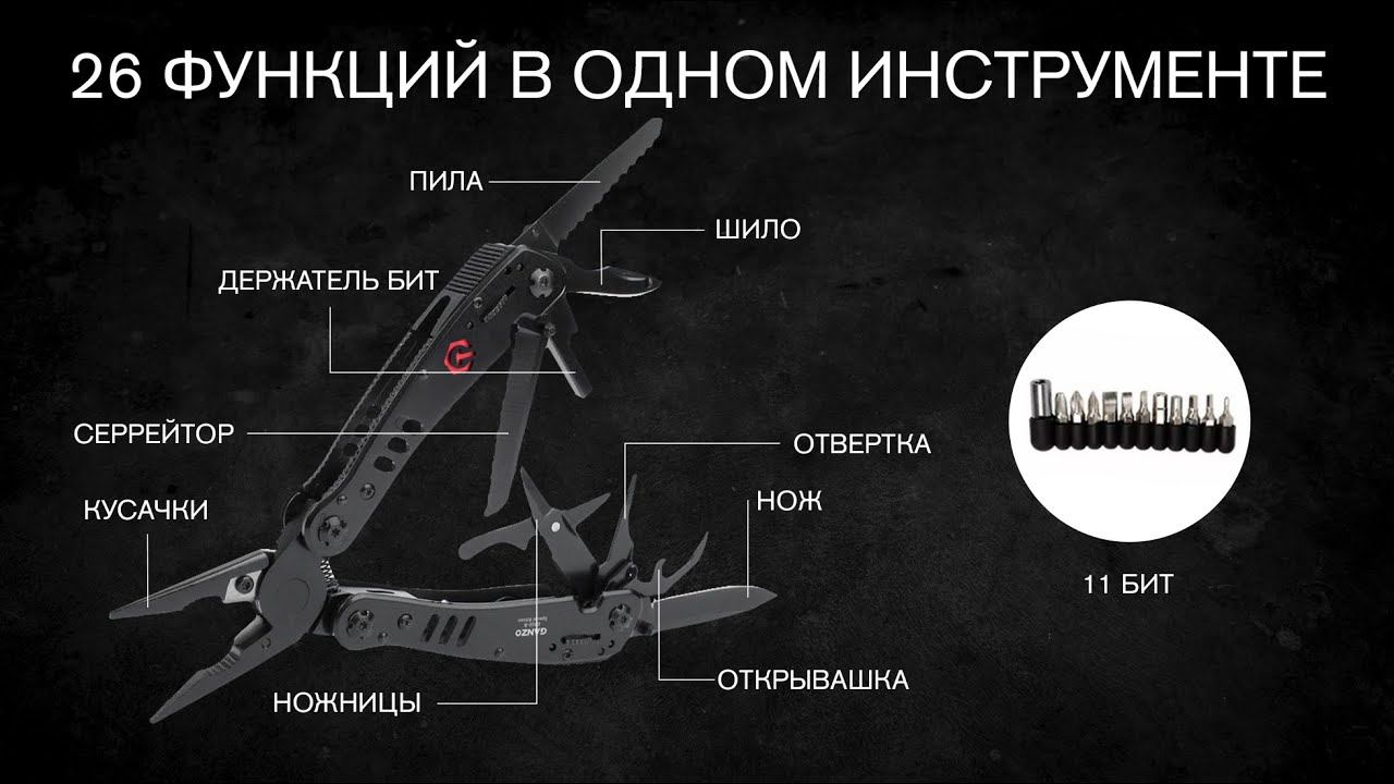 Удобный полноразмерный мультитул G302-В от компании Ganzo. Большой набор инструментов позволяет использовать модель G302-В для полноценного ремонта разнообразной техники. В комплект мультитула G301-В входят следующие инструменты: подпружиненные плоскогубцы с кусачками, два лезвия, одно из которых имеет серрейторную заточку, две плоских отвертки разного размера, пилу по дереву, ножницыи др. Компоненты: 1. Плоскогубцы (стандартные плоскогубцы, щипцы, кусачки для стали со сменными губцами) 2. Консервный нож 3. Гладкое лезвие 4. Серрейторное лезвие 5. Пила по дереву 6. Малая плоская отвертка 7. Ножницы 8. Шило 9. Держатель бит Цвет: черный Материал клинка: 440C (56-58HRC) Размер в сложенном виде: 10,5*5*2 см Подробные характеристики и актуальную цену можно найти на нашем сайте ► https://avantmarket.ru/multitul-ganzo-g302-b/ Если у вас возникнут какие-либо вопросы или потребуется дополнительная помощь, пожалуйста, не стесняйтесь обращаться к нам. Мы всегда готовы помочь вам и сделать ваш опыт взаимодействия с нами еще более приятным. Наши контакты: https://avantmarket.ru/ Общие вопросы: info@avantmarket.ru По вопросам продаж: sales@avantmarket.ru Номера для связи: +7 (499) 553 04 15 +7 (931) 009 32 83