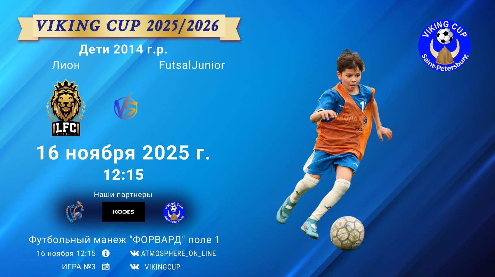 VIKING CUP среди команд 2014 г.р. (U11), Поле 1 16 ноября 2025 САНКТ-ПЕТЕРБУРГ, ФЦ "Форвард" ФК "Лион" - ФК "FutsalJunior"/VIKING CUP, Игра №3, 16-11-2025 12:15