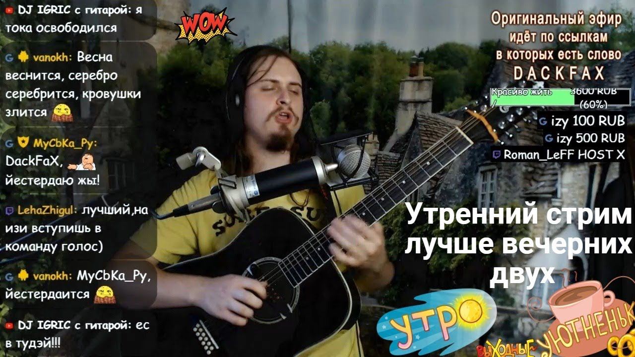 ⛔ Заказа песен - нет. Плейлиста - нет. Мат \ оскорбления - Запрещены. ⛔ Поддержка: https://donatepay.ru/d/dackfax -сообщение на экране Сбербанк МИР - 2202 2009 1094 6522 -анонимно qiwi: +79529705023 -анонимно Qiwi, Сбербанк и Яндекс деньги, без уведомления на экране и прочтения вслух, но для стримера они без комиссии. Далее сервисы с выводом сообщения на экран. Донат : https://www.donationalerts.ru/r/dackfax Поддержка: https://donatepay.ru/d/dackfax Яндекс Деньги: 410016891810710 € Donate: https://streamlabs.com/dackfax GG money: https://goodgame.ru/channel/dackfax/support Твич: https://www.twitch.tv/dackfax GG: https://www.goodgame.ru/channel/DackFaX Ютуб: https://www.youtube.com/user/alphapavel Ютуб gaming: https://gaming.youtube.com/c/DackFax Вконтакте: https://www.vk.com/dackfax Инстаграм: https://www.instagram.com/dackfax Дискорд: https://discord.gg/2sBb88j Телеграмм: https://t.me/dackfax ✉ E-mail: dackfax@ya.ru Предложения\ рекомендации\ просьбы\ плизз сбацай\ А давай эту\ и т.п\ - НЕ приветствуются, ⌚ Торопиться и нагонять суету - Не рекомендуется. ⚠ Также рекомендую воздержатся от бесполезных вопросов, типа: Где ♀ ?, А ♂ придёт?, Когда альбом?, Какой город?, А почему заказа нет?, и т.п. Контент канала бывает крайне неожиданным даже для самого автора. ㋛ Здесь Я качественно создаю домашнюю ламповую ♥ атмосферу без суеты и спешки, вместе с вами учусь красиво играть на гитаре, работаю над вокалом и рот-саксофоном. Помимо этого исполняю разные песни и каверы, естественно, общаясь с аудиторией. Так же вашему вниманию предлагаю к просмотру прохождение компьютерных игр и прослушивание винила в прямом эфире. Считаю занятным проводить онлайн: концерты, посиделки, квартирники, ютубники, сохраняя максимальную естетвеннность без всяких масок. Юморю шутки, читаю и пишу стихи. Делюсь своим личным опытом в гайдах и лайфхак. Снимаю блоги\влоги и многое другое. ☻ Качество звука на Твиче и GG лучше ♬ Скачать записи стримов в исходном качестве https://yadi.sk/a/WBHVNDQM3Zp7bd ⚙ Оборудование и ПК ⚙ Микрофоны: Rode nt1-a, Blue baby bottle, Alto ACM2S; Гитара: Crafter md70-12eq; Микшер: Behringer x32 rack; Наушники: Sennheiser HD202; Камера: Logitech C920; ОС, ПО: WIN 10, OBS-Studio, Nginx, FFmpeg; Мать: Asus P8Z68-V LX; Проц: i5-2400, 3.8GHz; ОЗУ: Corsair 10GB, DDR3-1600Mhz; ГПУ: GTX 660, 2GB, 192bit; HDD,SSD: STM3500418AS 500GB, KINGSTON SV300S37A120GB; Мониторы: Acer AL2016W, Samsung 710N; Клава: Tt MEKA G1; Мышь: Razer krait. ♀ Нина: https://www.youtube.com/channel/UCuTuebgg92JIByp2NCfg9JA ♂ Евгений: https://vk.com/altman_e ♀ Катя: https://www.youtube.com/channel/UCtQPxkyxHirRF7jKGn09vdg ♂ Антон: https://www.youtube.com/channel/UCuWqPqgPlPvO4RmtjsHpGrQ