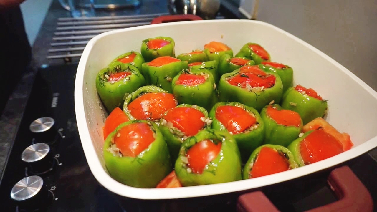 Постный фаршированный перец и постная толма из виноградных листьев