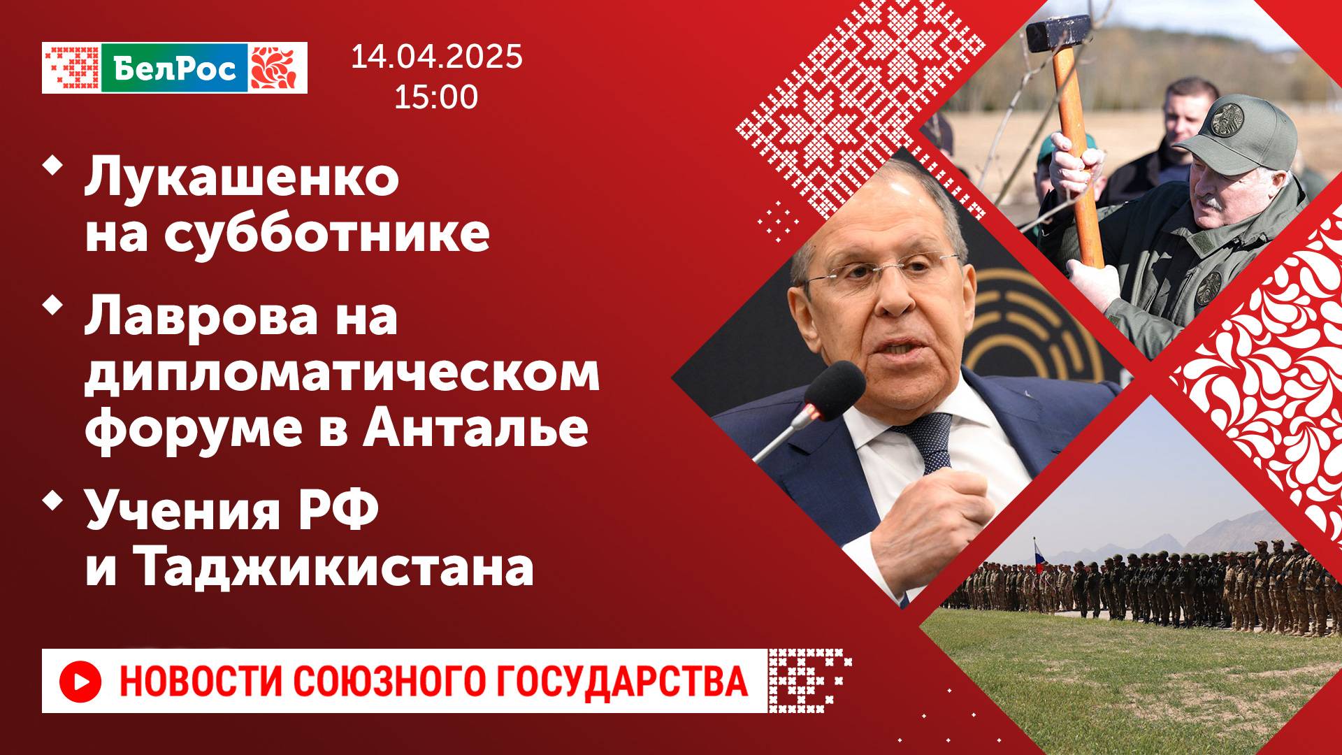 Лукашенко на субботнике / Лаврова на дипломатическом форуме в Анталье / Учения РФ и Таджикистана