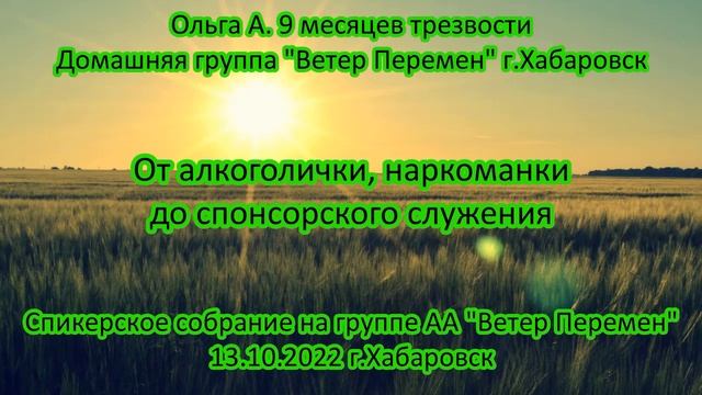Ольга А. От алкоголички до спонсорского служения. 9 мес.тр.д.гр. АА "Ветер перемен" Хаб-ск, 13.10.22