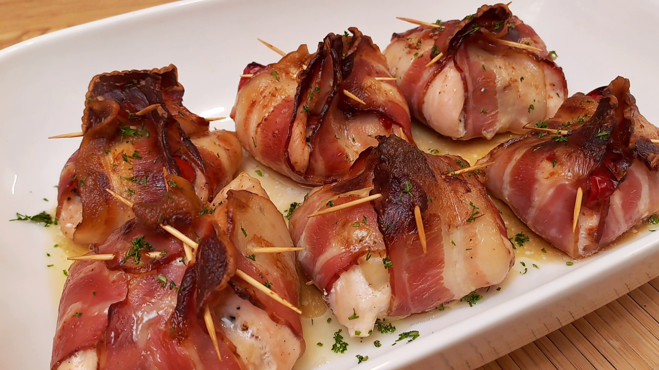Подписывайся на канал и делись видео с друзьями. Также у меня на канале еще очень много вкусных рецептов, и еще больше рецептов ждет вас впереди. Вконтакте - https://vk.com/vkusnierecipe Одноклассники - https://ok.ru/group/70000000861442 Дзен - https://dzen.ru/vkusnierecipes https://dzen.ru/isrecipe Весь музыкальный контент, использующийся в видео на данном канале размещён на основании лицензии Creative Commons 4.0 вариант лицензии CC0 (https://creativecommons.org/licenses/by/4.0/) с медиатеки, где не требуется указания авторства. ингредиенты: Красный и желтый перец. оливковое масло. соль, черный перец. 2 куриные филе. сыр фета (соленый). бекон.