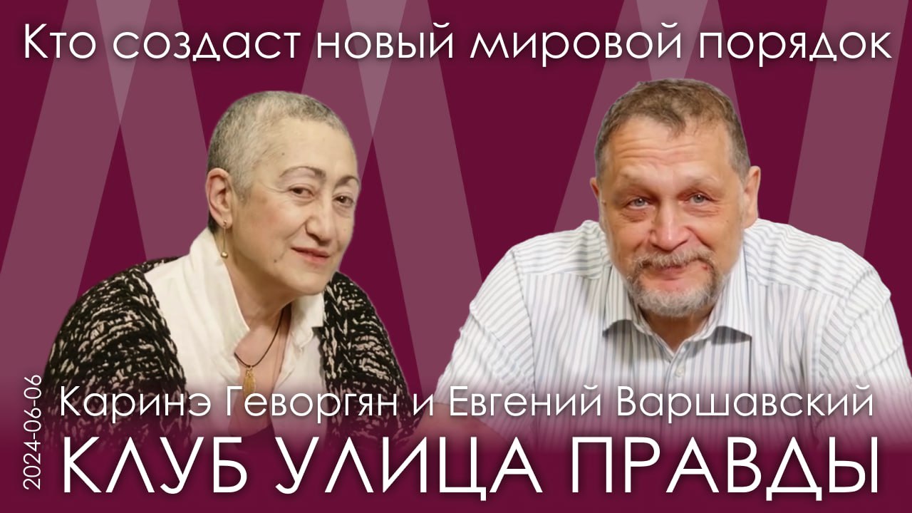 Заседание Клуба Улица Правды 6 июня 2024 года Е.Ю. Варшавский, К.А. Геворгян. Мы должны предъявить миру свой проект глобального масштаба • С 1945 года агрессивная война по документам ООН и по международным конвенциям считается военным преступлением. Поэтому с 1945 года никто никаких «агрессивных войн» как бы не ведёт. • Исключения: 1) ст.51 Устава ООН, признающая законным ведение боевых действий для отражения агрессии; 2) миротворческие операции по мандату ООН. Но их сначала по закону должны одобрить Генассамблея и Совбез с участием всех постоянных членов. • СВО никак не оформлена. Резолюции ООН по этому поводу не существует. Никто не мешал Украине объявить войну России, но в правовую плоскость этот вопрос не переводится по обоюдному согласию. • Добить ООН в нынешнем виде особых проблем не составит. Она уже сейчас практически перестала выполнять какие бы то ни было функции, кроме пропагандистских и представительских – часто против России. • Пока ООН – самого высокого уровня международная платформа на нашей планете: шестиязычный аппарат, грандиозный опыт международной деятельности, соответствующие специалисты, целый корпус международного права. После гибели ООН всё повиснет в воздухе уже окончательно. И мы вернемся в Средневековье. • Существующее ядерное оружие уничтожить нашу цивилизацию не способно. Но потери будут фатальны для технологического развития и уровня жизни большинства человечества. • Многополярный мир – эвфемизм, который означает возвращение в XIX век. Тогда каждый считал себя полюсом. Глобальный же контур управления появился только в виде ООН. И заменить его пока нечем. • Крупные суверенные страны – Россия, Китай, Индия, Иран – не хотят брать на себя ответственность по созданию чего-то аналогичного ООН. • Мы сумели создать высокоразвитую технологическую часть нашей общей цивилизации, но пока не способны предъявить социальную организацию, адекватную глобализованной индустриальной экономике. Это не значит, что нужно размонтировать достижения человечества и вернуться обратно к сословному обществу. • Высокая индустрия и технологии живут на социальной группе высококвалифицированных инженеров и работников. При капитализме высококвалифицированный инженер – это ценность, которая обеспечивает конкурентоспособность, а при феодализме – просто обслуга. • Уровень технологий, достигнутый в середине XX века, не особо вырос за исключением двух-трёх отраслей. • Субъектность за весь социум несет правящий класс, весь остальной народ – не субъектен, потому что у народа нет единой воли и единого разума. Единого целеполагания. • Существующее мироустройство не просто не может обеспечить дальнейший прогресс, оно не способно даже удержать достигнутый уровень. • Уровень управляемости процессами падает. Все начинают потихонечку отвязываться от доминанта, в т.ч. армейские спецслужбы. И в результате мы получим фрагментацию всего. • Признак геополитического статуса – наличие собственной литературы. Собственного проекта соответствующего масштаба. Системного подхода. • Альтернатива субъектности – вариант Земшарной республики Советов по образцу СССР. Механизм государственного управления и плановой экономики с элементами рыночной масштабировался под всю планету. Другого варианта, который даст качественный скачок цив