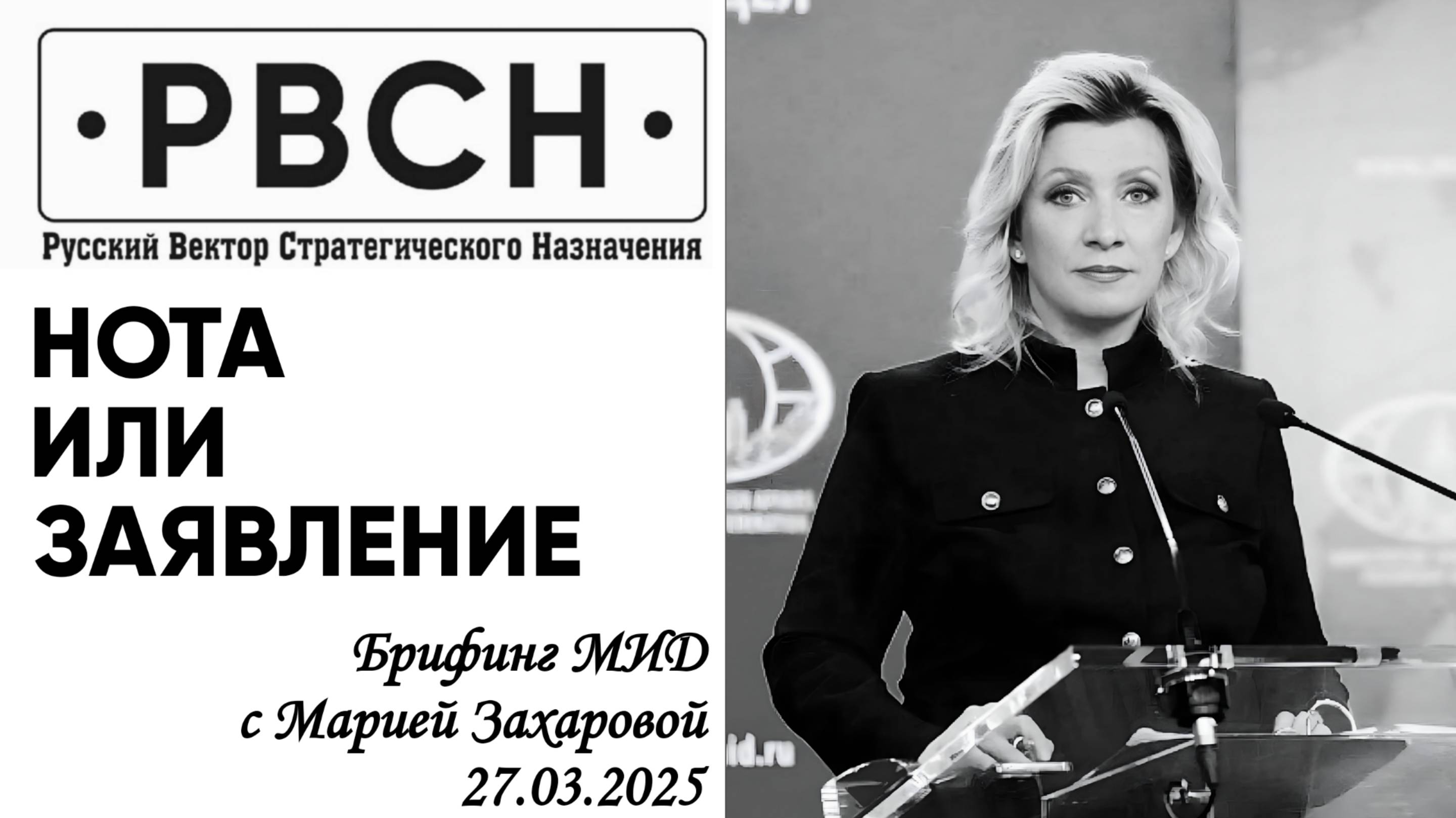 На брифинге официального представителя МИД России Марии Захаровой 27 марта были заданы вопросы от информационного агентства "РВСН" (Русский Вектор Стратегического Назначения): 1. Журналистов "Звезда" и "Известия" убили американские реактивные системы залпового огня HIMARS, а Небензя ещё в 2022 году говорил, что наведение HIMARS на цель осуществляется с помощью американских военных спутников, а военнослужащие США на земле осуществляют координацию спутниковой и развединформации. Последует ли со стороны МИД нота протеста правительству США? 2. Россия останется устойчивой угрозой для интересов США в долгосрочной перспективе — сообщила американская разведка. Сергей Лавров, комментируя переговоры в Эр-Рияде, заявил, что гарантии мира могут быть исключительно результатом приказа Зеленскому из Вашингтона. Вы, Мария Владимировна, призвали не ждать прорывов от переговоров РФ и США. Мирошник регулярно сообщает о пострадавших от обстрелов нацистов мирных жителей России. А в инфопространстве говорится о "гибридной", "информационной", "прокси" войне, а в реальности идёт горячая война США против России и во время войны должны быть у главнокомандующего все полномочия и Ставка Верховного главнокомандующего? По всей стране выходят с требованиями наделить Путина чрезвычайными полномочиями ПолномочияПутину.рф В своём ответе Мария Захарова высказала мнение, что публичное заявление не слабее ноты протеста. А вопрос о полномочиях Путину предложила адресовать в администрацию президента. Подробнее смотрите в видео. А как бы вы охарактеризовали характер текущей войны и необходимы ли Путину чрезвычайные полномочия? @rvsn_na_washington