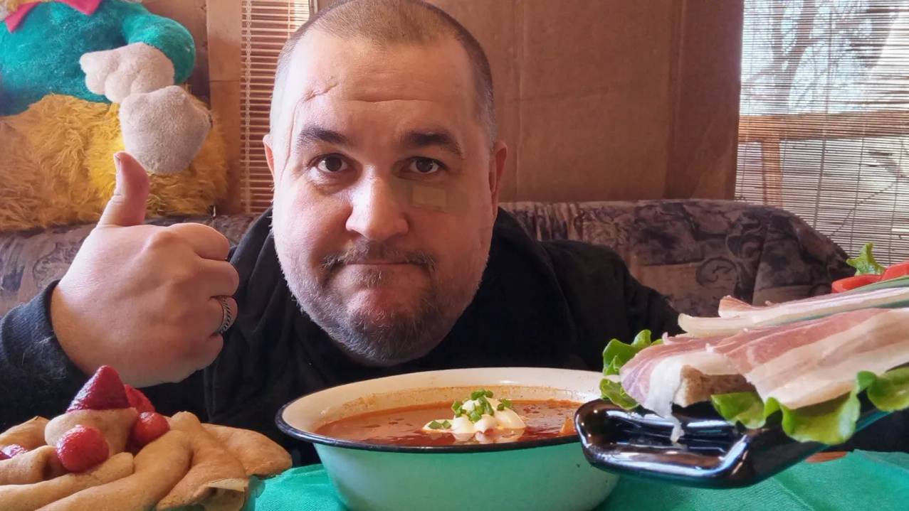 нажористый мукбанг - борщ с салом, клубника с блинами