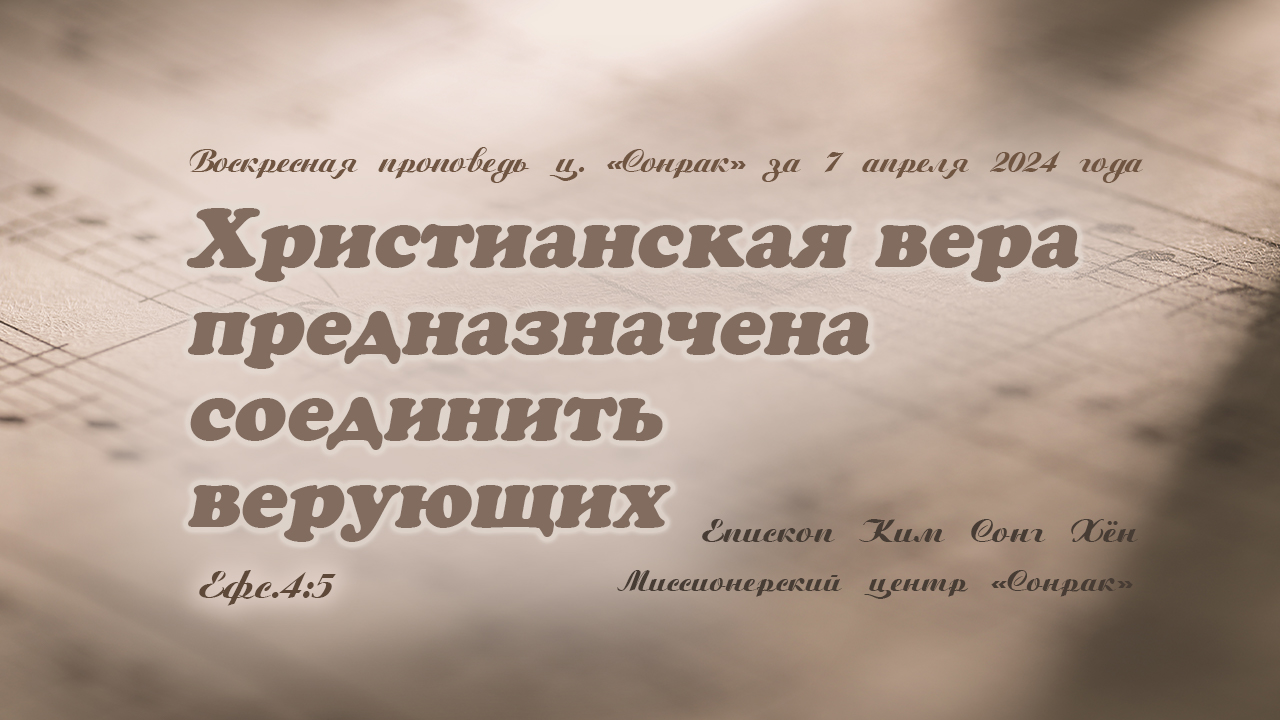 Господь, за которым следовали верующие Ветхого завета, и Господь, за которым следуют христиане, отличается? Если бы верующие первой церкви считали, что отличается, то как иудеи и язычники соединились бы во Христе? Не смогли бы. Ветхозаветные верующие более тысячи лет называли своего Бога «Господом». Когда Господь явился Моисею в горящем терновом кусте, Он представился: «Я есть Я». Позже, через другого пророка говорил: «Я –это Он». Иисус тоже пришел и говорил: «Я – это Он». Услышав из уст Иисуса выражение, которое использует только Бог, ученики сильно удивились. И только после Его воскресения убедились, что Он действительно тот Господь, который пребывал от начала. Стало ясно, что Иисус не появился впервые 2000 лет назад, Он есть Бог и Господь, пребывавший от начала. Иисус пожертвовал всем ради людей, отдал Cвою жизнь, поэтому в глазах мира сего был полным неудачником. Однако, Он стал превыше всех – главою церкви, и Божья воля состоит в том, чтобы всё принадлежащее Ему, объединилось. Ради единства христиан содержание веры тоже должно быть единым. Мы верим в доктрину, одобренную Господом, и переданную апостолами, не в доктрину, созданную по своей воле теми, кто игнорирует апостолов. Павел переживал, что Евангелие со временем может измениться, поэтому предупреждал, кто будет проповедовать другое Евангелие, отличное от проповеданного им, получит проклятие. Нам необходимо соблюдать осторожность, чтобы не изменять и не извращать содержание Библии вслед своим нечестивым мотивам или необдуманным методам. Иначе, единство церкви сильно пострадает. Каждый, кто признает одного Господа и одну веру, через крещение, публично исповедует свое решение жить новой жизнью в единстве с Господом: больше не жить ради себя, но подражать жертвенности Христа. В глазах мира сего это решение может показаться глупостью, приносящей только ущерб, но именно жертвенность – это путь к свободе, открытый Христом. Когда каждый, крестившийся осознает, что его крещение означает решение: «Как и Господь, я буду жертвовать ради церкви, ради братьев и сестер!», и будет осуществлять это на деле, то мы приблизимся к единству церкви, угодному Господу. Христиане идут узким путем. Образ христианской жизни не соответствует нашей воле, но мы добровольно повинуемся Господу. Наша жизнь может казаться крайне неудовлетворенной, но ее сложно назвать несчастной. Ибо это путь исполнения Божьей воли, чтобы все соединилось во Христе. К тому же, это путь к завершению нашего спасения. Если все верующие ясно осознают одного Господа, одну веру и одно крещение, то церковь не будет разделяться. Согласно вечной вере, данной вечным Господом, давайте примем решение посвятить Ему свои жизни! Господь избавил нас от греха, даровал свободу, давайте же, взирая на вечную надежду, следовать узким путем; посвящая себя церкви, преуспевать в жизни веры! Христианская вера предназначена соединить верующих Ефс.4:5 Воскресная проповедь ц. «Сонрак» за 7 апреля 2024 года Епископ Ким Сонг Хён Миссионерский центр «Сонрак» вся проповедь здесь ↓↓↓↓↓↓↓↓↓↓↓↓↓ https://rutube.ru/video/fe80306ed55d750e612f5dd06dbe4d07/ ЭЛ.ПОЧТА: berearussia2015@gmail.com САЙТ: http://www.berearussia.org/ ЮТУБ: https://www.youtube.com/channel/UCHrXAWxq5MlDJoY87fMjknw РУТУБ: https://rutube.ru/channel/25256916/about/ ТЕЛЕГРАМ: https://t.me/BLGOMISLIE ФЕЙСБУК: https://www.facebook.com/groups/www.berearussia.org ИНСТАГРАМ: https://www.instagram.com/russiaberea ОДНОКЛАССНИКИ: https://ok.ru/profile/1452815