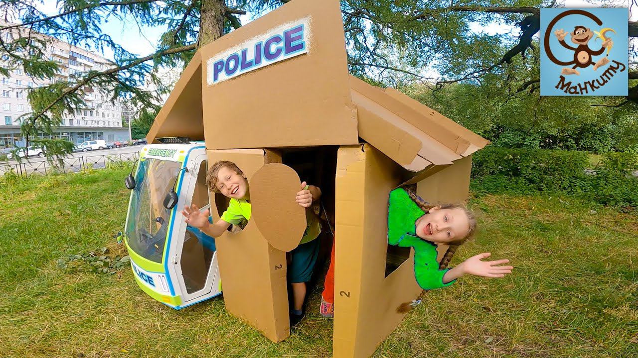 Привет. В новом весёлом видео Диана и Даня строят домик для полицейской машины. Мы решили строить домик из Картона. Что у нас получилось и как в этот домик поместилась наша полицейская машина, ты узнаешь из нового видео на канале Манкиту.