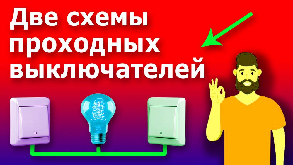 Как организовано освещение в длинных коридорах или на лестницах? Когда на входе щелкаешь выключателем, включаешь свет, а в другом конце коридора выключаешь свет уже другим выключателем? Такие выключатели называют проходными, работая в паре, они как бы являются одним выключателем, но с двумя точками управления. Сегодня вы разберетесь в премудростях подключения проходных выключателей, и уже сами сможете смонтировать эту диковинку электромонтажа. Мы рассмотрим сначала общеизвестную схему подключения проходных выключателей, а затем вы узнаете и другую схему, более удобную на лестницах или во дворе. Проходной выключатель с виду почти не отличается от обычного, у него одна клавиша, но вся хитрость в контактах. С одной стороны у него два электрических зажима, и с другой еще один. Попробуем прозвонить контакты. Это устройство правильнее назвать переключателем. При нажатии на клавишу, мы размыкаем одну цепь, а замыкаем другую. На этом и основана вся хитрость включения освещения. На стенде собран макет схемы подключения проходных переключателей. Подключена одна лампочка, но может быть несколько подключенных параллельно светильников. От лампочки кабель идет в распределительную коробку. Сюда же приходит и питающий кабель от электрического щита. К проходным выключателям так же проложены трехжильные кабели из распределительной коробки. Сейчас посмотрим, как подключать кабель к проходному выключателю. Белый провод я подключу к общему зажиму, стоящему на одной стороне. А голубой и желто-зеленый провода подключаю к зажимам, находящимся на другой стороне выключателя. Устанавливаю выключатель на место, закрепляю. Второй выключатель подключается точно так же. Итак, все оборудование установлено, осталось правильно соединить провода в распределительной коробке. Провод защитного заземления пока не будем подключать и отведем в сторону. Нулевой провод питающего кабеля сразу подключаем к соответствующему проводу, идущему к лампочке. Входящий фазный провод подключаем к белому проводу, идущему к одному из выключателей. Белый провод, идущий от лампочки, соединяем с белым проводом, идущим ко второму выключателю. Остались у нас четыре провода: два голубых и два желто-зеленых. Поступим просто – желто-зеленый к желто-зелёному, но схема будет работать и, если мы перепутаем эти провода. Подаю напряжение. Человек заходит в коридор и включает свет. Проходит до конца коридора и выключает свет. И так будет все работать в любой последовательности и сколько угодно раз. Ну, а теперь, другая схема, которая подойдет там, где не очень удобно монтировать первую. Например, на лестницах, где выключатели и светильники находятся на разных уровнях. Схема предусматривает последовательное подключение приборов, Рассмотрим макет схемы на стенде. От электрического щита кабель приходит в распределительную коробку, Из коробки идет кабель к светильникам. И еще один кабель идет к первому по ходу выключателю. А ко второму выключателю кабель идет уже от первого выключателя В распределительной коробке нулевой провод, как обычно, подключаем к нулевому лампочки. Фазный провод подключаем к белому, идущему на первый выключатель. А голубой провод, идущий от первого выключателя, соединяем с белым, идущим на лампочку. А второй выключатель подключаем точно также, как и в предыдущ