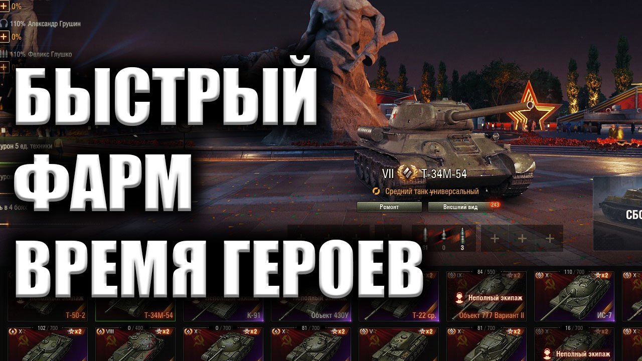 БЫСТРЫЙ ФАРМ ВРЕМЯ ГЕРОЕВ ★ Мир Танков