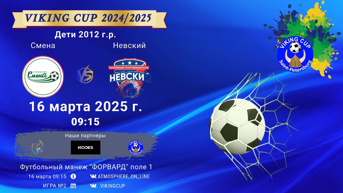 VIKING CUP среди команд 2012 г.р. (U13), Поле 1 16 марта 2025 САНКТ-ПЕТЕРБУРГ, ФЦ "Форвард" ФК "Смена" - ФК "Невский"/VIKING CUP, Игра №2, 16-03-2025 09:15
