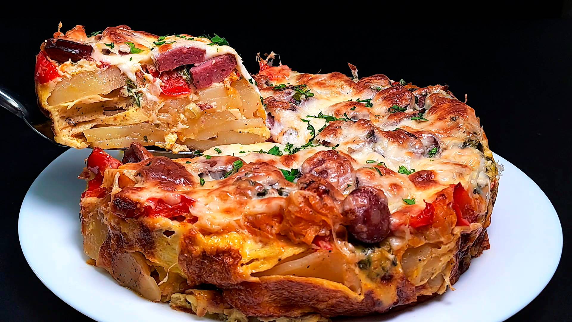 Ингредиенты к рецепту: 4 яйца. 50 грамм майонеза. 1 килограмм картофеля. соль, черный перец, паприка. оливковое масло с перцем чили. белый лук. растительное масло (для жарки). 2 зубчика чеснока. 1 морковь. 1 красный болгарский перец. 2 копчёные сосиски. зеленый лук, петрушка. 150 грамм сыра моцарелла. Подписывайся на канал и делись видео с друзьями. Также у меня на канале еще очень много вкусных рецептов, и еще больше рецептов ждет вас впереди. Вконтакте - https://vk.com/vkusnierecipe Одноклассники - https://ok.ru/group/70000000861442 Дзен - https://dzen.ru/vkusnierecipes https://dzen.ru/isrecipe Весь музыкальный контент, использующийся в видео на данном канале размещён на основании лицензии Creative Commons 4.0 вариант лицензии CC0 (https://creativecommons.org/licenses/by/4.0/) с медиатеки, где не требуется указания авторства.