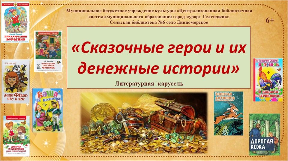 С целью формирования основ финансовой грамотности Сельская библиотека №6 с. Дивноморское представила вниманию юных читателей книжную карусель «Сказочные герои и их денежные истории» Благодаря денежным историям литературных персонажей, которые показаны в видео, ребята открыли для себя мир финансов. На примерах из авторских и народных сказок: «Приключения Буратино» А. Толстого, «Дядя Фёдор, пёс и кот» Э. Успенского, «Золотая антилопа», «Жадный мельник» и др. дети смогли разобраться в «товарно-денежных» ситуациях и узнать для чего нужны деньги, как можно их зарабатывать и тратить с пользой. #ЧитающийГеленджик, #БиблиотекиГеленджика