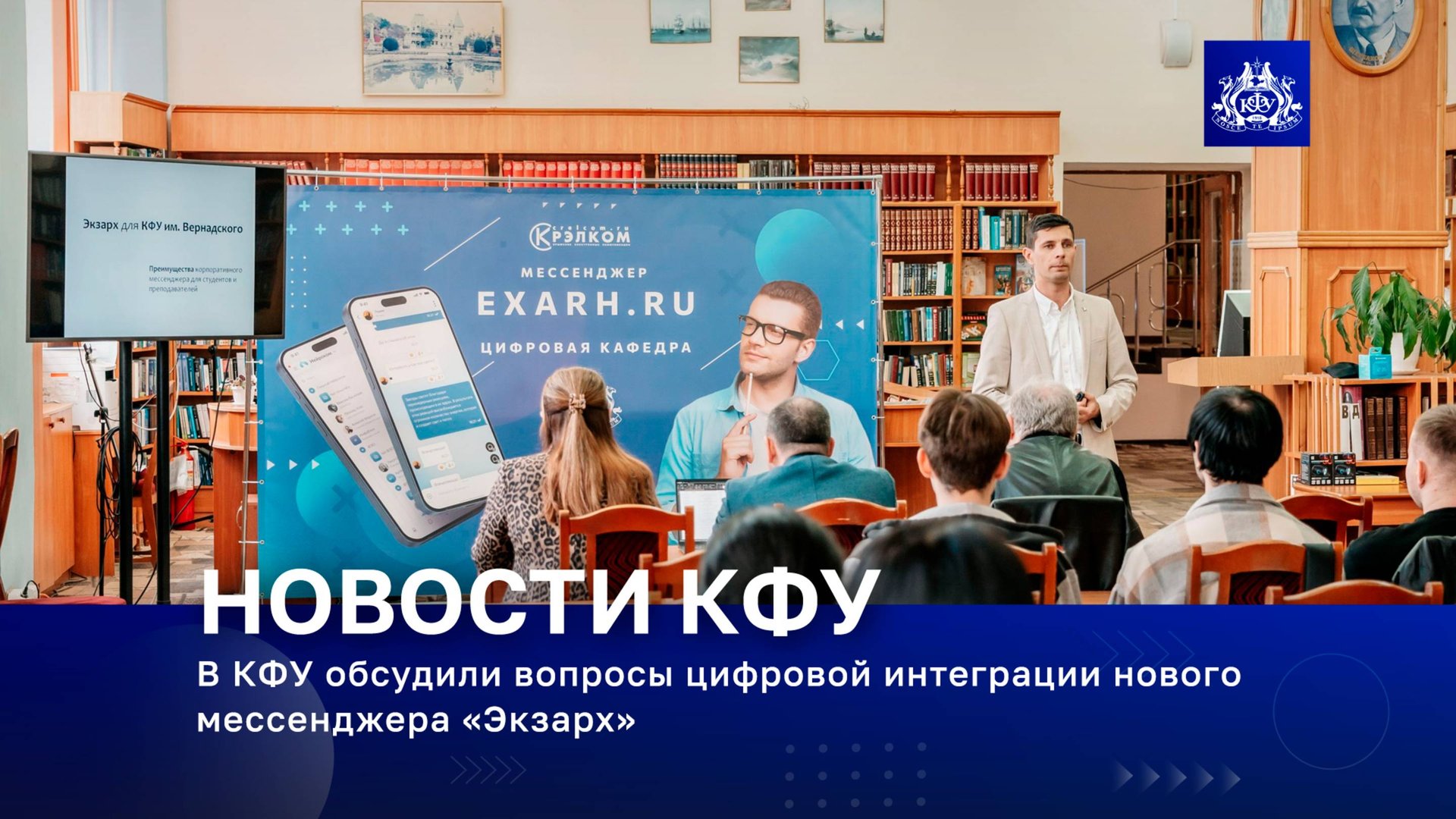 В КФУ обсудили вопросы цифровой интеграции нового мессенджера «Экзарх» Открытая конференция по вопросам цифровой интеграции нового российского мессенджера «Экзарх» в учебный процесс прошла в Крымском федеральном университете. Студенты и преподаватели вуза познакомились с работой корпоративного мессенджера, узнали о его функциональных особенностях и перспективах развития. Подробности – в ролике.