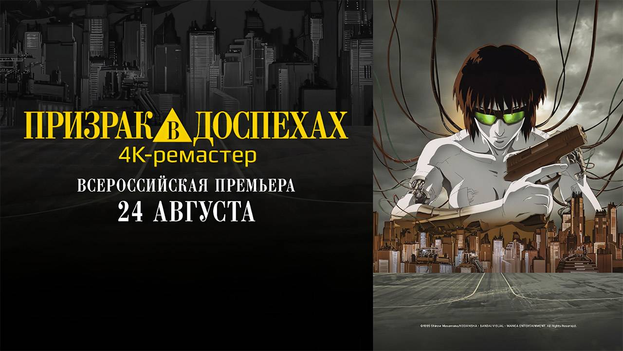 Японское фантастическое киберпанк-аниме «Призрак в доспехах (1995)» (Koukaku Kidoutai) заработало за две недели проката почти 14,45 млн рублей. Культовый анимационный фильм, которому в этом году исполняется 30 лет, впервые вышел в российский прокат в новой 4К-реставрации. Мультфильм основан на одноименной манге Масамунэ Сиро 1989 года. Режиссер: Мамору Осии.