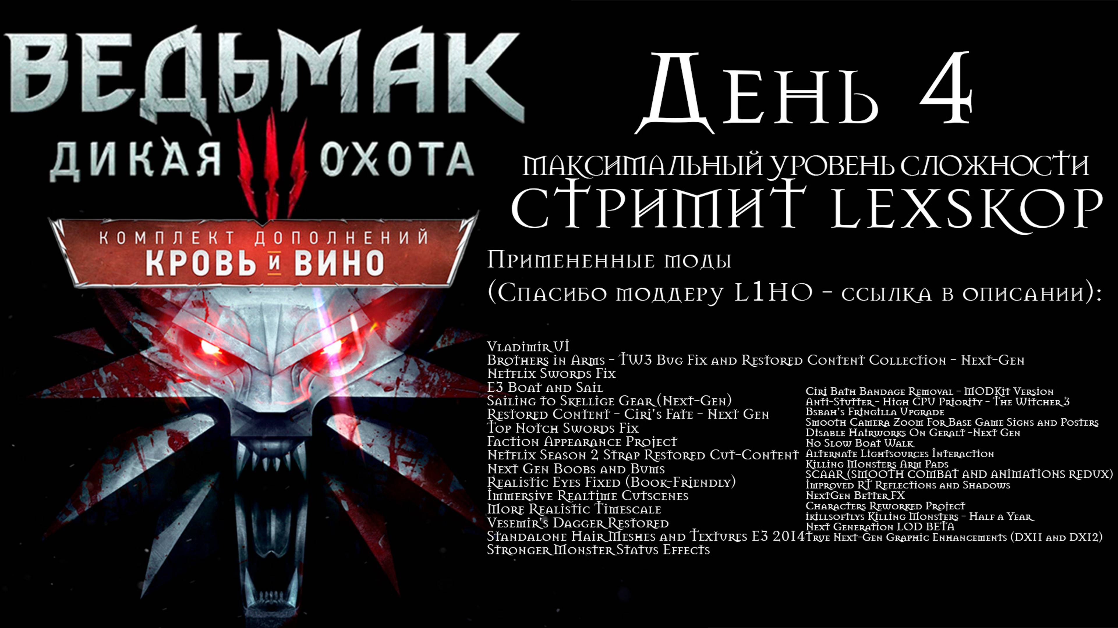 Играем в Ведьмак 3: Дикая Охота NEXT-GEN Отдельная благодарность моддеру L1HO за сборку игры! Ссылка на его страничку ниже! Ссылка на моддера L1HO - https://t.me/ThisIsL1HO Примененные моды: Vladimir UI Brothers in Arms - TW3 Bug Fix and Restored Content Collection - Next-Gen Netflix Swords Fix E3 Boat and Sail Sailing to Skellige Gear (Next-Gen) Restored Content - Ciri's Fate - Next Gen Top Notch Swords Fix Faction Appearance Project Netflix Season 2 Strap Restored Cut-Content Next Gen Boobs and Bums Realistic Eyes Fixed (Book-Friendly) Immersive Realtime Cutscenes More Realistic Timescale Vesemir's Dagger Restored Standalone Hair Meshes and Textures E3 2014 Stronger Monster Status Effects Ciri Bath Bandage Removal - MODKit Version Anti-Stutter - High CPU Priority - The Witcher 3 HQ Female Hairstyles Bsbah's Fringilla Upgrade Smooth Camera Zoom For Base Game Signs and Posters Disable Hairworks On Geralt -Next Gen No Slow Boat Walk Alternate Lightsources Interaction Killing Monsters Arm Pads SCAAR (SMOOTH COMBAT AND ANIMATIONS REDUX) Improved RT Reflections and Shadows NextGen Better FX Characters Reworked Project ikillsoftlys Killing Monsters - Half a Year Next Generation LOD BETA True Next-Gen Graphic Enhancements (DX11 and DX12) Стримы проходят тут: Good Game: https://goodgame.ru/channel/lexskop/ Twitch: https://www.twitch.tv/lexskop Trovo: https://trovo.live/Lexskop YouTube: https://www.youtube.com/@lexskop Rutube: https://rutube.ru/channel/27228101/ Vk.Play: https://vkplay.live/lexskop NUUM: https://nuum.ru/channel/lexskop Kick: https://kick.com/lexskop Социальные сети тут: Discord: https://discord.gg/paADXk7Shs Telegram: https://t.me/+J1tsz5xGhlgzMGM6 VK: https://vk.com/lexskopclub Поддержать стримера: DonationAlerts: https://www.donationalerts.com/r/lexskop Boosty.to: https://boosty.to/lexskop #steam #bestmoments #games #goodgame #plays #лучшиемоменты #лучшее #момент #atomicheart #axe #best #moments #good #nice #easy #ez #thewitcher #thewitcher3 #thewitcher3wildhunt #thewitcherenhancededition #geralt #geraltofrivia #life #beast #beasts #ведьмак #ведьмак3 #ведьмаки #ведьмак3прохождение #ведьмакузаплатитечеканноймонетой #игры #стримы #приключение #моменты #жизнь #монстры #чудовища #дракон #зверь #отношения #кубики #ведьмак #thewitcher2 #ведьмак3 #ведьмак #thewitcher3 #thewitcher #witcher3 #ведьмак3дикаяохота #ведьмак3прохождение #ведьмак3секреты #witcher #геральт #дикаяохота #ведьмак3тайны #thewitcher3wildhunt #прохождение