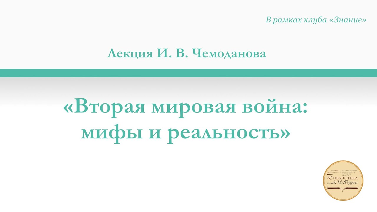 Лекция «Вторая мировая война мифы и реальность»