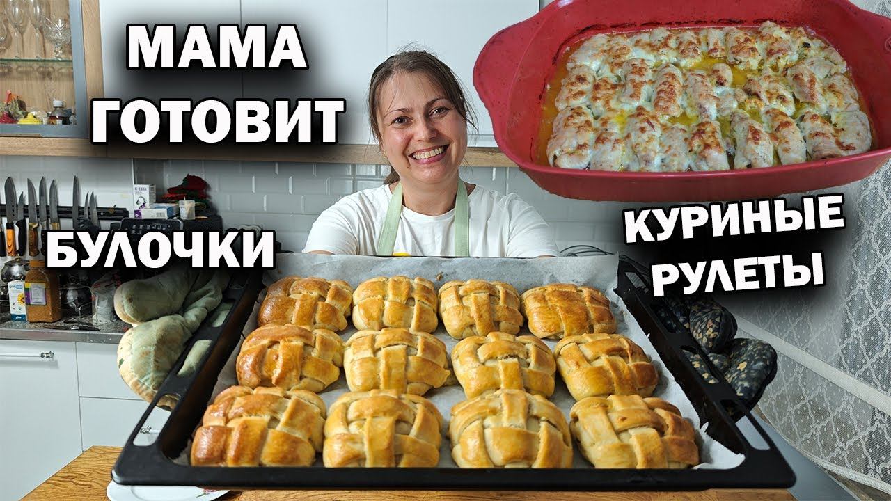 МАМА ГОТОВИТ В ЖАРУ! БУЛОЧКИ как сделать плетение из теста, КУРИНЫЕ РУЛЕТИКИ с начинкой. #рецепты