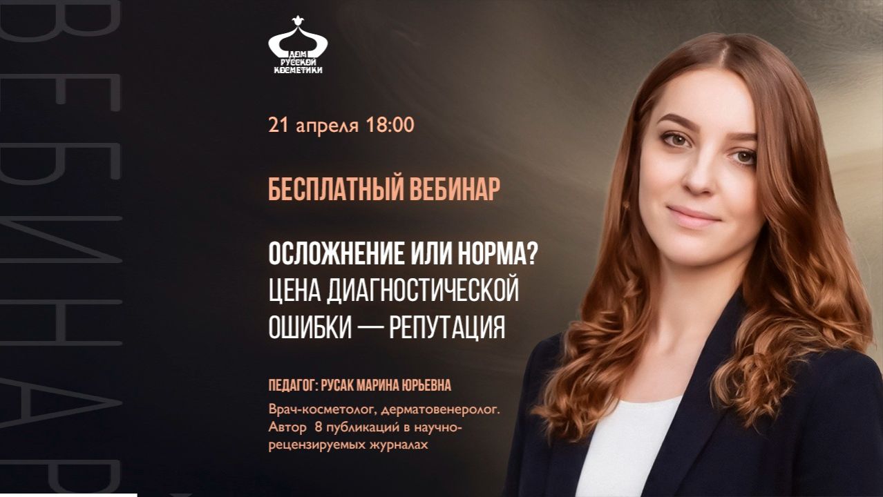 Пациент уходит после процедуры, а через день пишет: покраснение, высыпания, отёк… Это нормальная реакция или уже осложнение? Решение нужно принимать быстро — и от него зависит не только результат, но и отзыв, повторный визит и ваша репутация. И чаще всего ошибка происходит не во время процедуры, а ещё на этапе диагностики. На вебинаре разобрали, как отличать норму от осложнений и действовать уверенно даже в сложных ситуациях ⚠️ 📌 В программе: 1️⃣ Три состояния, которые легко перепутать Акне, розацеа и чувствительная кожа — разная тактика, разные риски 2️⃣ Норма или осложнение? Как отличить skin purging от дерматита, герпеса и гранулёмы 3️⃣ Репутационные риски Цепочка: осложнение → соцсети → жалоба → суд Какие документы вас защищают 📄 4️⃣ Алгоритм действий при осложнениях 5 шагов: от оценки до направления к специалисту Этот вебинар — про уверенность в своих решениях, безопасность пациента и защиту вашей репутации. 👉🏻Приглашаем в ДРК на День Открытых Дверей! Регистрация: https://promo.sikorsky.academy/dod_dom_russkoy_cosmetiki 🔥 АКЦИЯ на курсы повышение квалификации в ДРК - До 60% выгоды. 💡 Узнайте подробности 👉 https://promo.sikorsky.academy/povyshenie_apr_2026 💉 Все наши курсы по инъекционной косметологии с ценами, датами и количеством свободных мест в группах https://cosmeticru.com/kursy-kosmetologii/kosmetologiya-in-ektsionnaya-kosmetologiya ⚡️Новые требования в законе? Мы готовы! Обновили курс «Сестринская косметология» - 504 ак.ч. При оформлении на курс в апреле - подарки: 🎁 Пакет “Хиты процедур” (90 ак. часов) 🎁 Курс “Инъекционная косметология” (72 ак.ч.) за 16 651 ₽ вместо 130 890 ₽ 🎁 Курс “Инъекционная косметология” (72 ак.ч.) БЕСПЛАТНО при выборе «Сестринская косметология VIP» (871 ак. часов) Новый курс «Косметология» 576 ак. часов для врачей ✅ Профессиональная переподготовка по типовой программе Минздрава РФ, действующей с 1 марта 2026 года 🔥Специальные условия на все базовые курсы косметологии, в том числе Косметолог-эстетист без медицинского образования 👉 https://promo.sikorsky.academy/rassrochka-kesh25-baza-apr2026 =================== 🔹Институт косметологии и эстетической медицины в Москве https://www.cosmeticru.com 🔹Telegram https://t.me/institutdrk 🔹VK https://vk.com/institutdrk ⚡️Связаться с нами: https://max.ru/id7728434782_bot