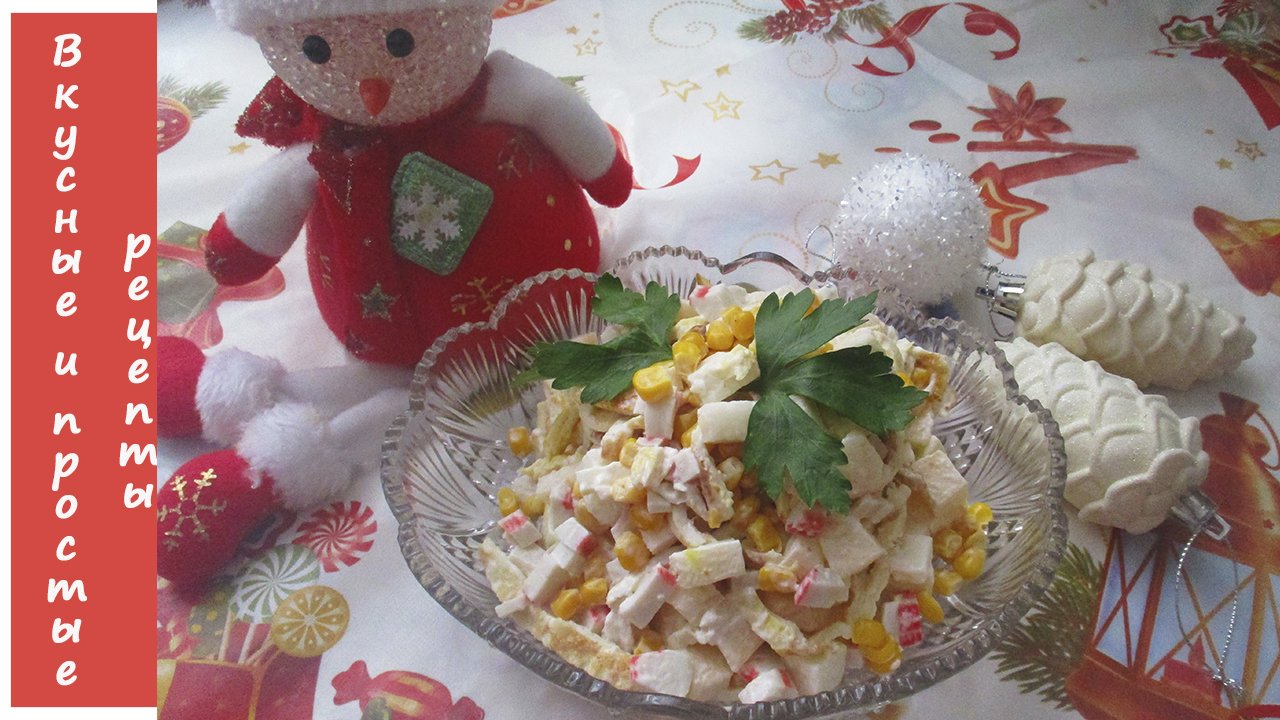 Салат «Снежок», это всем знакомый и такой любимый салат с крабовыми палочками и кукурузой, в нашей новой версии с яичными блинчиками и яблоком. Разве можно устоять и не попробовать Ингредиенты: Колбаса полукопченая - 200 г. Сыр - 100 г. Консервированная кукуруза - 100 г. Яйца - 3 шт. Майонез - 2 ст. л. Способ приготовления: 1.В миске смешать кукурузу и кубиком нарезанные крабовые палочки. 2.Добавить кубиком нарезанное яблоко без кожуры. 3.Яйца взбить в миске и немного посолить. 4.На сковороде обжарить яичный блинчик с обоих сторон. 5.Нарезать блинчик и добавить в миску к остальным ингредиентам. 6.Заправить салат майонезом Можно подавать к столу!Приятного вам аппетита! #салат #салаты #салатнановыйгод #новогоднийсалат #праздничныйсалат #салатновыйгод2023 #новогодниерецепты