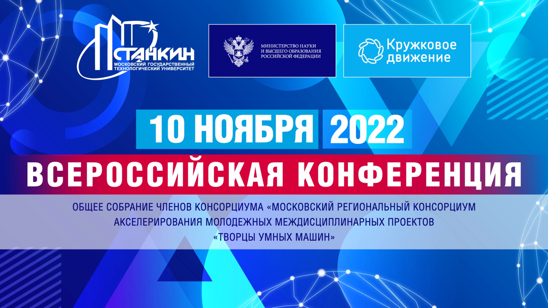 Тема конференции «Проблемы и перспективы формирования Всероссийской экосистемы, обеспечивающей профессиональное самоопределение и развитие научно-технического творчества и инновационной деятельности детей и молодежи в соответствии с моделями деятельности Кружкового движения Национальной технологической инициативы». Здесь будет осуществляться трансляция следующих мероприятий конференции: 10:00 открытие Конференции (пленарное заседание). 11:00 Научно-методический семинар «Практика и опыт организации и открытия профиля Национальной технологической олимпиады в образовательной организации высшего образования (школьный трек)». 12:30 Презентация конкурсных работ участниками Всероссийского конкурса лучших практик организаций, подведомственных Министерству науки и высшего образования Российской Федерации, в области профессионального самоопределения и развития научно-технического творчества и инновационной деятельности детей и молодежи. 13:40 Подведение итогов Конференции.
