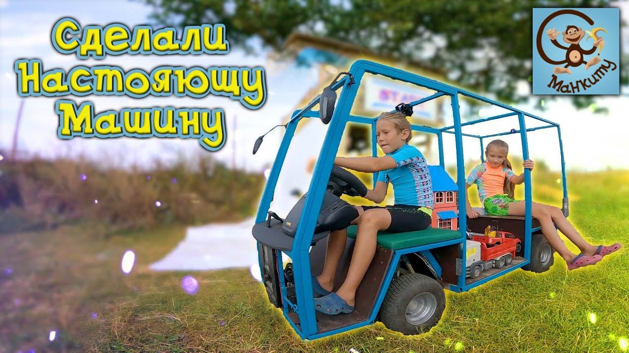 Дети и Машина. Манкиту едут на машине строить домик для игрушек.