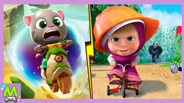 Говорящий Том vs Маша и Медведь.Велосипедные Гонки Мультгероев.Кто Круче