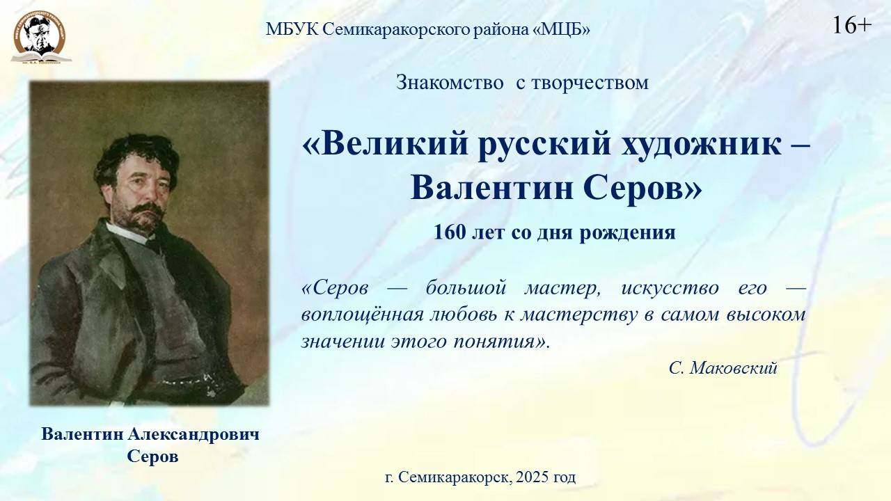 Знакомство с творчеством «Великий русский художник – Валентин Серов»