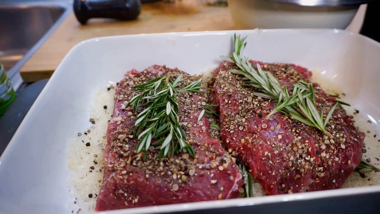 Запечённое говяжье мясо в крупной соли, приготовленное в духовке. Рецепт от Жоржа