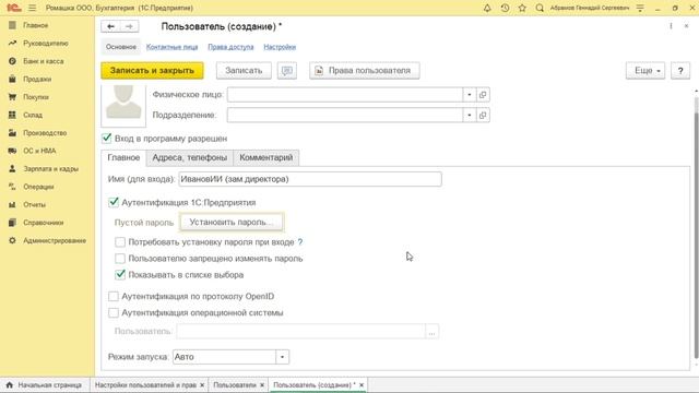 Как создать нового пользователя в 1С:Бухгалтерия 8, редакция 3 | Микос Программы 1С