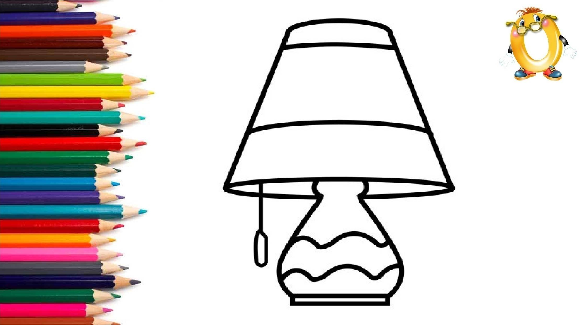 Мультик - раскраска для детей НАСТОЛЬНАЯ ЛАМПА. Учимся как рисовать ЛАМПУ вместе с детьми.