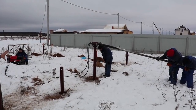Монтаж винтовых свай небольшой гидравлической установкой в МО. СВ-Фундамент