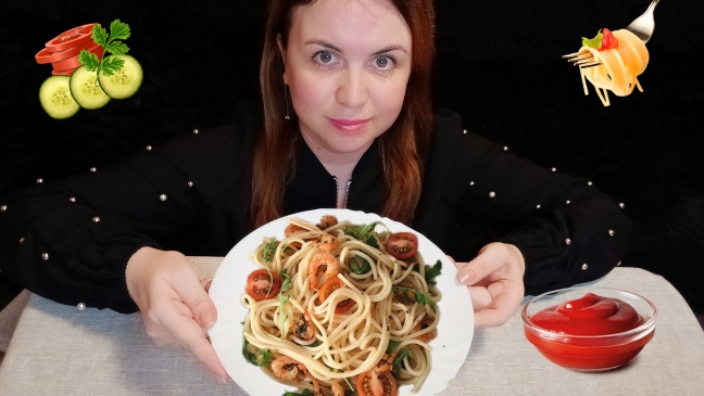 Макароны с курицей. Домашняя еда. Мукбанг.