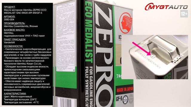 Продукт: Масло моторное Idemitsu ZEPRO ECO MEDALIST SAE 0W-20 API SN/GF-5 Наш телефон: 8-800-550-57-22 ПН-ПТ 9.00-17.00 (МСК+4) Артикул: 3583-004 Производитель: Idemitsu Cosan, Япония Базовое масло: Idemitsu, Гидрокрекинговое VHVI + ПАО пакет Пакет присадок: Vanderbilt Ссылка для покупки: https://mygt.ru/Oil/selection/idemitsu-zepro-eco-medalist--0w20-sngf-5-4l.html Особенности: Синтетическое энергосберегающее моторное масло для современных четырёхтактных бензиновых двигателей, в том числе с турбо наддувом. Данный продукт произведен на основе синтетического базового масла с использованием запатентованной технологии ldemitsu Коsan Со.Ltd, благодаря чему обладает высоким индексом вязкости, превосходными смазывающими характеристиками при высоких температурах и уникальными пусковыми свойствами при низких температурах. Обеспечивает надёжную защиту и экономичность современных двигателей легковых автомобилей, микроавтобусов и внедорожников. Характеристики: Класс вязкости: 0W-20 SAE Цвет: Жёлто-коричневый ASTM D-1500 Плотность при температуре 15°C: 0,8460 г/см3 D-4052-96 Температура вспышки (COC): 224°C D-92 Температура застывания: -41°C Вязкость при температуре 40°C: 33,46мм2/с D-445 Вязкость при температуре 100°C: 8,186мм2/с D-445 Индекс вязкости: 234 D-2270 Общее щелочное число, TBN: 9,59мгКОН/г D-2896-96 Кислотное число, TAN: 2,42 мгКОН/г D-664 Вспенивание, при 93,0°C: 10-0% веса В-892 Вязкость при температуре 150°C и высокой скорости сдвига, HTHS mPa・s SAE J 300 2,64 Вязкость проворачивания при -35°C, CCS mPa・s SAE J 300 4200 Содержание сульфатной золы: 0,97% веса Коррозия на медной пластине, 3 часа при 100°C D-130 1(1A) Испаряемость при 250°C, NOACK % веса D-5800 11,23 (Max-15,0%) Отличия упаковки оригинала: Вес продукта с упаковкой (Брутто): 3754 гр. - Блестящий верхний кант - Рельефный значок в виде буквы i на верхней части канистры - Ровный сварной шов на боку канистры - Шлифовка метала на ручке типа bridge перпендикулярно - Следы от колесиков конвейера на дне упаковки в виде параллельных полос - Дата производства тары на дне упаковки должна быть ровна или ранее даты розлива продукта Ссылки на дополнительные материалы по продукту а так же SDS и TDS: http://nskrobot.ru/images/FOTO/MYGT_RU/3583-004_MSDS_MYGT_RU.pdf http://nskrobot.ru/images/FOTO/MYGT_RU/3583-004_TDS_MYGT_RU.pdf #характеристикимасла3583-004 #моторноемасло #antonmygt #mygtru #mygtauto #oemcatalog Наш сайт: MYGT.RU Наш канал ПРАВДА ПРО АВТОМАСЛА: https://www.youtube.com/channel/UC5JygfcXAA5Xq18sxUx_wIQ/ Телефон: 8 800 550 57 22 Бесплатно по России Внимание! Полное либо частичное копирование данного материала без согласия автора допускается только при указании ссылки на источник (данный канал) Все права защищены ANTON_MYGT #anton_mygt #anton_voronkov #mygtauto #масломан #каталог масел и спецжидкостей