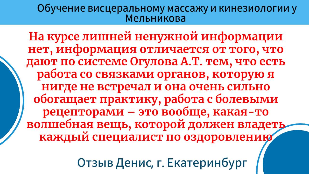Обучение висцеральному массажу и кинезиологии. Отзыв. Денис, г. Екатеринбург