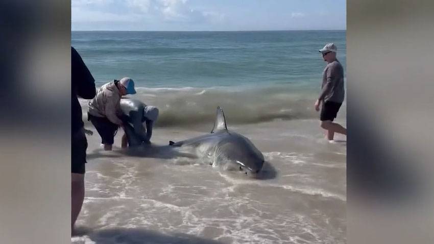 В США рыбаки выловили 700-килограммовую белую акулу и отпустили обратно в океан
