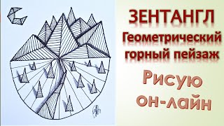 Зентангл Геометрический горный пейзаж