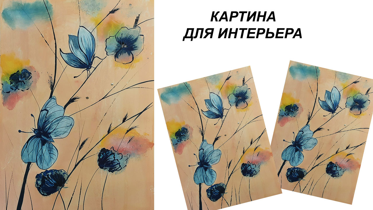 Как нарисовать бабочку. Рисуем пейзаж гуашью. Картина для интерьера.