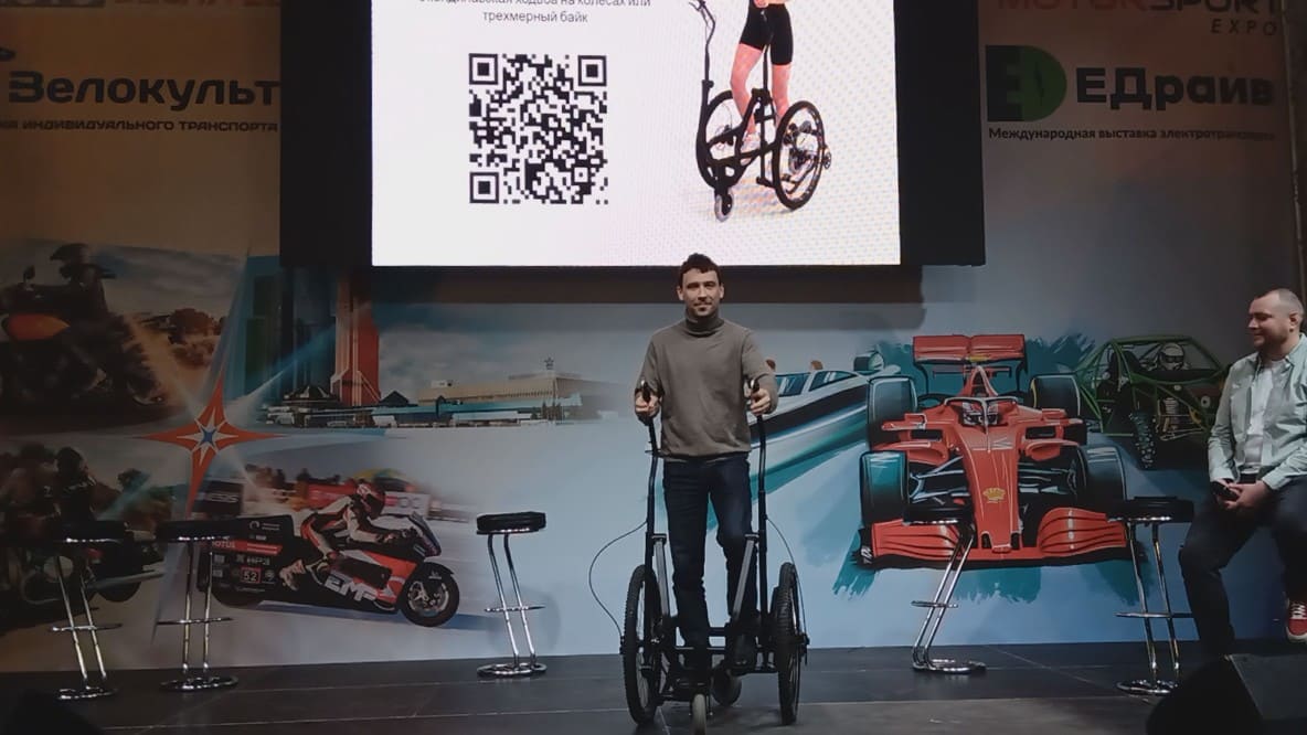 Мир становится всё более подвижным, но сидение долгое время за рулём или за компьютером на рабочем месте можно, это не совсем здоровый образ жизни. И вот Дмитрий Логунов создал гибрид средства передвижения и эллиптического тренажёра – Jarribike. На нём можно одновременно и ехать, и тренировать много групп мышц. И это своё изобретение он представил на «Перспективы развития национальной электромобильной индустрии России в реалиях 2022 года». Кто-то спросит, а причём тут электротранспорт. Да просто как в случае и с велосипедами, этот тренажёр также может получить электрический апгрейт. Jarribike - https://jarri.bike